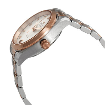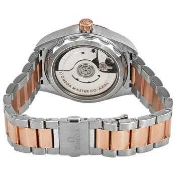 Stainless steel case with a stainless steel bracelet with 18kt rose sedna gold center links. Fixed 18kt rose sedna gold bezel. White dial with rose gold hands and diamond hour markers. Dial Type: Analog. Date display at the 6 o'clock position. Omega calibre 8800 automatic movement, containing 35 Jewels, bitting at 25200 vph, and has a power reserve of approximately 55 hours. Scratch resistant sapphire crystal. Pull / push crown. Transparent case back. Round case shape. Case size: 34 mm. Band width: 16 mm. Fold over clasp with a push button release. Water resistant at 150 meters / 500 feet. Functions: date, hour, minute, second. Aqua Terra Co-axial Series. Luxury watch style. Watch label: Swiss Made. Omega Aqua Terra Co-Axial Automatic Diamond White Dial Ladies Watch 220.20.34.20.52.001.