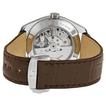 Silver-tone stainless steel case with a brown leather strap. Fixed smooth 18kt rose gold bezel. Teak-grey dial with rose gold-tone arrow-shaped hands and index hour markers. Minute markers around the outer rim. Dial Type: Analog. Luminescent hands and markers. Date display at the 3 o'clock position. Omega Calibre 8500 Automatic movement, containing 39 Jewels, composed of 202 parts, bitting at 25200 vph, and has a power reserve of approximately 60 hours. Scratch resistant sapphire with anti-reflective tr crystal. Screw down crown. Transparent exhibition case back. Round case shape, case size: 41.5 mm, case thickness: 13.2 mm. Band width: 22 mm, band length: 9 inches. Tang clasp. Water resistant at 150 meters / 500 feet. Functions: date, hour, minute, second, co-axial escapement, chronometer. Seamaster Aqua Terra Co-axial Series. Casual watch style. Watch label: Swiss Made. Omega Aqua Terra Co-Axial Teak-Grey Dial Brown Leather Men's Watch 23123422106001.