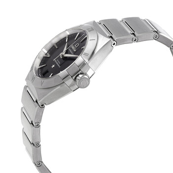 Stainless steel case with a stainless steel bracelet. Fixed stainless steel bezel. Black dial with luminous 18kt white gold hands and index hour markers. Minute markers around the outer rim. Dial Type: Analog. Date display at the 6 o'clock position. Omega calibre 8800 automatic movement, containing 35 Jewels, bitting at 25200 vph, and has a power reserve of approximately 55 hours. Scratch resistant sapphire crystal. Pull / push crown. Transparent case back. Round case shape. Case size: 36 mm. Band width: 22.2 mm. Fold over clasp with a push button release. Water resistant at 50 metres / 167 feet. Functions: date, hour, minute, second. Constellation Automatic Series. Luxury watch style. Watch label: Swiss Made. Omega Constellation Automatic Black Dial Ladies Watch 131.10.36.20.01.001.