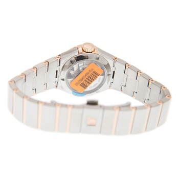 Silver-tone stainless steel case with a two-tone (silver-tone and rose gold-tone) stainless steel and 18kt rose gold bracelet. Fixed 18kt rose gold bezel. Opaline silver dial with 18kt rose gold hands and diamond hour markers. Dial Type: Analog. Luminescent hands. Date display at the 6 o'clock position. Omega Calibre 8700 automatic movement with a 50-hour power reserve. Scratch resistant sapphire crystal. Solid case back. Round case shape, case size: 27 mm. Band width: 17 mm. Fold over clasp with a safety release. Water resistant at 100 meters / 330 feet. Functions: date, hour, minute, second, co-axial escapement, chronometer, magnetic resistant. Constellation Series. Luxury watch style. Watch label: Swiss Made. Omega Constellation Automatic Chronometer Diamond Silver Dial Ladies Watch 127.20.27.20.52.001.