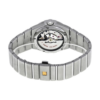 Stainless steel case with a stainless steel bracelet. Fixed stainless steel bezel. Black dial with silver-tone hands and stick hour markers. Minute markers around the outer rim. Dial Type: Analog. Luminescent hands and markers. Date display at the 6 o'clock position, day of the week at the 12 o'clock position. Omega calibre 8602 automatic movement, based upon Omega 8500, containing 39 Jewels, bitting at 25200 vph, and has a power reserve of approximately 55 hours. Scratch resistant sapphire crystal. Pull / push crown. Skeleton case back. Round case shape. Case size: 38 mm. Case thickness: 11 mm. Band width: 21 mm. Band length: 8 inches. Deployment clasp with a push button release. Water resistant at 100 meters / 330 feet. Functions: date, day, hour, minute, second, chronometer. Constellation Series. Luxury watch style. Watch label: Swiss Made. Item Variations: 123 10 38 22 01 001, 123-10-38-22-01-001, 123/10/38/22/01/001, 12310382201001. Omega Constellation Automatic Chronometer Men's Watch 123.10.38.22.01.001.