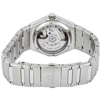 Stainless steel case with a stainless steel bracelet. Fixed stainless steel bezel. Grey dial with silver-tone skeleton hands and diamond hour markers. Dial Type: Analog. Date display at the 6 o'clock position. Omega calibre 8700 automatic movement with a 50-hour power reserve. Scratch resistant sapphire crystal. Pull / push crown. Transparent case back. Round case shape. Case size: 29 mm. Band width: 17.6 mm. Butterfly clasp. Water resistant at 50 meters / 165 feet. Functions: date, hour, minute, second. Dress watch style. Watch label: Swiss Made. Omega Constellation Automatic Diamond Grey Dial Ladies Watch 131.10.29.20.56.001.