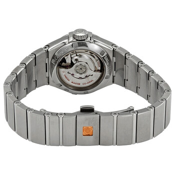 Stainless steel case with a stainless steel bracelet. Fixed stainless steel bezel. Silver dial with luminous rose gold-tone hands and diamond hour markers. Dial Type: Analog. Luminescent hands. Date display at the 6 o'clock position. Omega calibre 8700 automatic movement. Scratch resistant sapphire crystal. Pull / push crown. Transparent case back. Round case shape. Case size: 27 mm. Band width: 17 mm. Fold over clasp with a push button release. Water resistant at 100 meters / 330 feet. Functions: date, hour, minute, second. Luxury watch style. Watch label: Swiss Made. Omega Constellation Automatic Diamond Silver Dial Ladies Watch 127.10.27.20.52.001.