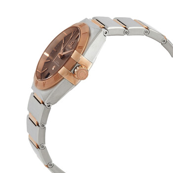 Stainless steel and 18kt sedna™ rose gold case and bracelet. Fixed 18kt sedna™ rose gold bezel. Bronze dial with 18kt sedna™ rose gold hands and index hour markers. Dial Type: Analog. Date display at the 6 o'clock position. Omega Calibre 8800 Automatic movement, containing 35 Jewels, bitting at 25200 vph, and has a power reserve of approximately 55 hours. Scratch resistant sapphire crystal. Pull / push crown. Transparent case back. Round case shape, case size: 36 mm. Push button folding clasp. Water resistant at 50 meters / 165 feet. Functions: date, hour, minute, second. Constellation Automatic Series. Luxury watch style. Watch label: Swiss Made. Omega Constellation Automatic Ladies Watch 13120362013001.