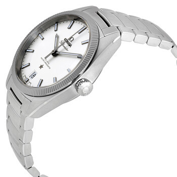 Stainless steel case with a stainless steel bracelet. Fixed fluted stainless steel bezel. Silver dial with luminous steel hands and index hour markers. Minute markers around the outer rim. Dial Type: Analog. Luminescent hands and markers. Date display at the 6 o'clock position. Omega calibre 8900 automatic movement, based upon Omega 8500, containing 39 Jewels, bitting at 25200 vph, and has a power reserve of approximately 60 hours. Scratch resistant sapphire crystal. Pull / push crown. Transparent case back. Round case shape. Case size: 39 mm. Band width: 20 mm. Deployment clasp. Water resistant at 100 meters / 330 feet. Functions: date, hour, minute, second, chronometer. Globemaster Series. Luxury watch style. Watch label: Swiss Made. Omega Constellation Automatic Silver Dial Men's Watch 13030392102001.