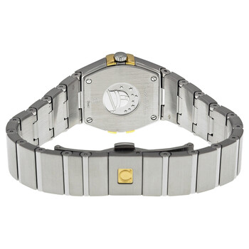 Stainless steel case with a stainless steel bracelet. Fixed stainless steel bezel with 18kt yellow gold accents. Champagne mother of pearl dial with luminous gold-toned hands and diamond hour markers. Dial Type: Analog. Luminescent hands. Quartz movement. Scratch resistant sapphire crystal. Pull / push crown. Solid case back. Case diameter: 24 mm. Round case shape. Band width: 19.05 mm. Band length: 7.5 inches. Fold over clasp. Water resistant at 100 meters / 330 feet. Functions: hour, minute, second. Luxury watch style. Watch label: Swiss Made. Omega Constellation Champagne Mother of Pearl Diamond Ladies Watch 12320246057002.