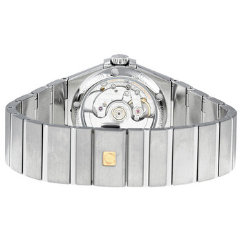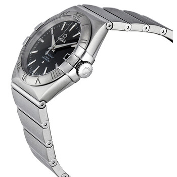 Stainless steel case and stainless steel bracelet. Fixed stainless steel bezel. Black dial with luminous silver-tone hands and index hour markers. Minute markers around the outer rim. Dial Type: Analog. Luminescent hands and markers. Date display at the 3 o'clock position. Omega calibre 2500 automatic movement, based upon ETA 2892-A2, containing 27 Jewels, bitting at 25200 vph, and has a power reserve of approximately 48 hours. Scratch resistant sapphire crystal. Pull / push crown. Skeleton case back. Round case shape. Case size: 35 mm. Case thickness: 10 mm. Band width: 23 mm. Fold over clasp with a push button release. Water resistant at 100 meters / 330 feet. Functions: date, hour, minute, second, co-axial escapement, chronometer. Constellation Chronometer Series. Luxury watch style. Watch label: Swiss Made. Item Variations: 12310352001001. Omega Constellation Chronometer Black Dial Men's Watch 123.10.35.20.01.001.