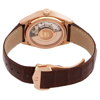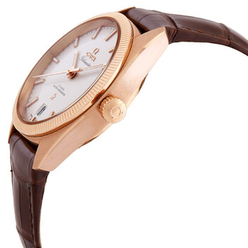 18kt sedna gold case with a brown leather strap. Fixed, fluted rose gold-tone bezel. Silver dial with rose gold-tone hands and index hour markers. Minute markers around the outer rim. Dial Type: Analog. Luminescent hands and markers. Date display at the 6 o'clock position. Omega Calibre 8901 automatic movement with a 60-hour power reserve. Scratch resistant sapphire crystal. Transparent case back. Round case shape. Case size: 39 mm. Band width: 20 mm. Water resistant at 100 meters / 330 feet. Functions: date, hour, minute, second, co-axial escapement, chronometer. Luxury watch style. Watch label: Swiss Made. Omega Constellation Globemaster Automatic Chronometer Silver Dial Men's Leather Watch 130.53.39.21.02.001.