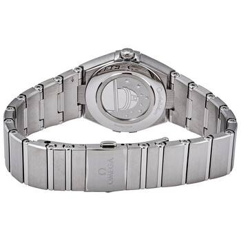 Stainless steel case with a stainless steel bracelet. Fixed stainless steel bezel. Mother of pearl dial with 18kt white gold hands and diamond hour markers. Dial Type: Analog. Omega calibre 4061 quartz movement. Scratch resistant sapphire crystal. Pull / push crown. Solid case back. Round case shape. Case size: 28 mm. Band width: 17.5 mm. Fold over clasp with a push button release. Water resistant at 30 meters / 100 feet. Functions: hour, minute. Additional Info: original box, manual (complete accessories). Dress watch style. Watch label: Swiss Made. Omega Constellation Manhattan Diamond Mother of Pearl Dial Ladies Watch 131.10.28.60.55.001.