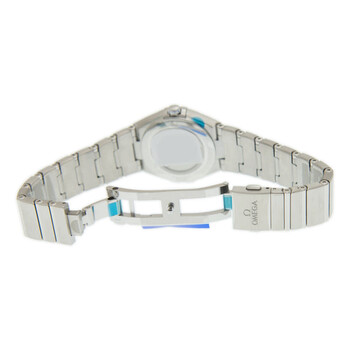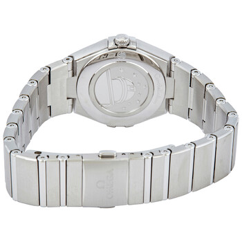 Stainless steel case with a stainless steel bracelet. Fixed stainless steel bezel set with diamonds. Grey dial with silver-tone skeleton hands and diamond hour markers. Dial Type: Analog. Omega calibre 4061 quartz movement. Scratch resistant sapphire crystal. Pull / push crown. Solid case back. Round case shape. Case size: 28 mm. Band width: 17.5 mm. Fold over clasp with a push button release. Water resistant at 30 meters / 100 feet. Functions: hour, minute. Luxury watch style. Watch label: Swiss Made. Omega Constellation Manhattan Quartz Diamond Grey Dial Ladies Watch 131.15.28.60.56.001.