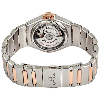 Stainless steel case with a stainless steel bracelet with 18kt sedna gold links. Fixed 18kt sedna gold bezel. Sun-brushed brown dial with 18kt sedna gold hands and diamond hour markers. Dial Type: Analog. Date display at the 6 o'clock position. Omega calibre 4061 quartz movement. Scratch resistant sapphire crystal. Pull / push crown. Transparent case back. Round case shape. Case size: 28 mm. Band width: 17.5 mm. Fold over clasp with a push button release. Water resistant at 30 meters / 100 feet. Functions: date, hour, minute, second. Luxury watch style. Watch label: Swiss Made. Omega Constellation Manhattan Sun-brushed Brown Diamond Dial Ladies Watch 131.20.29.20.63.001.
