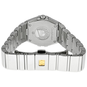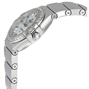 Stainless steel case with a stainless steel bracelet. Fixed stainless steel bezel set with 28 diamonds. Mother of pearl dial with luminous silver-tone hands and index hour markers. Dial Type: Analog. Luminescent hands. Omega calibre 1376 quartz movement with a 48 months power reserve. Scratch resistant sapphire crystal. Push / pull clasp. Solid case back. Round case shape. Case size: 24 mm. Case thickness: 8 mm. Band width: 16 mm. Band length: 6 inches. Fold over clasp with a push button release. Water resistant at 30 meters / 100 feet. Functions: hour, minute. Additional Info: withstands rain and splashes of water, but not showering or submersion. Dress watch style. Watch label: Swiss Made. Item Variations: 123 15 24 60 05 002, 123-15-24-60-05-002, 123/15/24/60/05/002, 12315246005002. Omega Constellation Mother of Pearl Diamond Ladies Watch 12315246005002.
