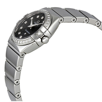 Stainless steel case with a stainless steel bracelet. Fixed set with diamonds bezel. Black dial with silver-tone hands and diamond hour markers. Dial Type: Analog. Luminescent hands. Quartz movement. Scratch resistant sapphire crystal. Screw down crown. Solid case back. Case diameter: 24 mm. Case thickness: 7.5 mm. Band width: 15 mm. Fold over with safety clasp. Water resistant at 100 meters / 330 feet. Functions: hour, minute. Luxury watch style. Watch label: Swiss Made.