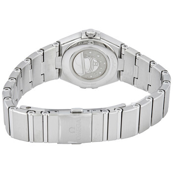 Stainless steel case with a stainless steel bracelet. Fixed stainless steel bezel set with diamonds. Blue (aventurine) dial with silver-tone skeleton hands and diamond hour markers. Dial Type: Analog. Omega Calibre 4061 quartz movement. Scratch resistant sapphire crystal. Solid case back. Round case shape. Case size: 25 mm. Band width: 15.9 mm. Dold over clasp with a push button release. Water resistant at 30 meters / 100 feet. Functions: hour, minute. Dress watch style. Watch label: Swiss Made. Omega Constellation Quartz Diamond Blue Dial Ladies Watch 131.15.25.60.53.001.