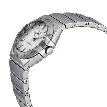 Stainless steel case with a stainless steel bracelet. Fixed stainless steel bezel. Silver dial with luminous silver-tone hands and index hour markers. Dial Type: Analog. Quartz movement. Scratch resistant sapphire crystal. Pull / push crown. Solid case back. Case diameter: 27 mm. Case thickness: 9 mm. Round case shape. Band width: 15 mm. Band length: 6 inches. Fold over clasp with a push button release. Water resistant at 30 meters/ 100 feet. Functions: hours, minutes. Dress watch style. Watch label: Swiss Made. Item Variations: 123 10 27 60 02 002, 123-10-27-60-02-002, 123/10/27/60/02/002, 12310276002002. Omega Constellation Polished Stainless Steel 27 mm Ladies Watch 12310276002002.