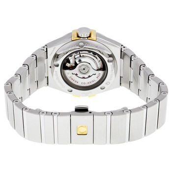 Stainless steel case with a stainless steel bracelet. Fixed stainless steel bezel with 18kt yellow gold claws. White mother of pearl dial with yellow gold hands and diamond hour markers. Dial Type: Analog. Date display at the 3 o'clock position. Automatic movement with a 50 hour power reserve. Scratch resistant sapphire crystal. Pull / push crown. Transparent case back. Case diameter: 31 mm. Round case shape. Band width: 20.3 mm. Band length: 8 inches. Deployment clasp. Water resistant at 100 meters / 330 feet. Functions: date, hour, minute, second, chronometer. Luxury watch style. Watch label: Swiss Made. Item Variations: 123 20 31 20 55 004, 123-20-31-20-55-004, 123/20/31/20/55/004, 12320312055004. Omega Constellation White Mother of Pearl Diamond Steel and 18K Yellow Gold Ladies Watch 123.20.31.20.55.004.