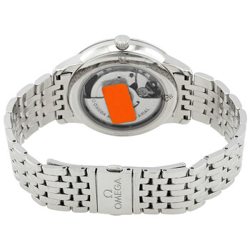 Silver-tone stainless steel case and bracelet. Fixed silver-tone stainless steel bezel. Green dial with silver-tone hands and Roman numeral hour markers. Minute markers around the outer rim. Dial Type: Analog. Date display at the 6 o'clock position. Omega Calibre 8800 Automatic movement, containing 35 Jewels, bitting at 25200 vph, and has a power reserve of approximately 55 hours. Scratch resistant sapphire crystal. Transparent see through case back. Round case shape, case size: 40 mm. Fold over clasp with a safety release. Water resistant at 30 meters / 100 feet. Functions: date, hour, minute, second, co-axial escapement, chronometer, magnetic resistant. Additional Info: original box, international warranty card, manual (complete accessories). De Ville Series. Luxury watch style. Watch label: Swiss Made. Omega De Ville Automatic Chronometer Green Dial Men's Watch 434.10.40.20.10.001.