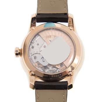 18kt rose gold case with a brown leather strap. Fixed bezel. Brown dial with gold-tone hands and Roman numeral hour markers. Dial Type: Analog. Date display at the 3 o'clock position. Omega Calibre 8501 automatic movement with a 60-hour power reserve. Scratch resistant sapphire crystal. Transparent case back. Case size: 41 mm. Round case shape. Water resistant at 100 meters / 330 feet. Functions: date, hour, minute, second, co-axial escapement, chronometer. Luxury watch style. Watch label: Swiss Made. Omega De Ville Automatic Chronometer Men's Watch 431.53.41.21.13.001.