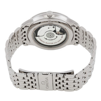 Silver-tone stainless steel case and bracelet. Fixed silver-tone stainless steel bezel. Pink dial with black hands and Roman numeral hour markers. Minute markers around the outer rim. Dial Type: Analog. Date display at the 6 o'clock position. Omega Calibre 8810 automatic movement. Scratch resistant sapphire crystal. Transparent see through case back. Round case shape, case size: 41 mm. Fold over clasp with a safety release. Water resistant at 30 meters / 100 feet. Functions: date, hour, minute, second. Additional Info: original box, international warranty card, manual (complete accessories). De Ville Series. Luxury watch style. Watch label: Swiss Made. Omega De Ville Automatic Pink Dial Men's Watch 434.10.41.21.10.001.