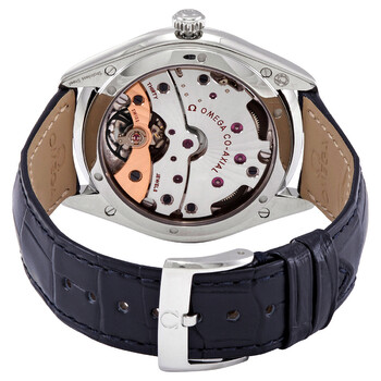 Stainless steel case with a blue (alligator) leather strap. Fixed stainless steel bezel. Blue dial with silver-tone hands and index hour markers. Minute markers around the outer rim. Dial Type: Analog. Date display at the 6 o'clock position. Omega calibre 8511 hand wind movement, containing 39 Jewels, bitting at 25200 vph, and has a power reserve of approximately 60 hours. Scratch resistant sapphire crystal. Transparent case back. Round case shape. Case size: 40 mm. Band width: 20 mm. Tang clasp. Water resistant at 30 meters / 100 feet. Functions: date, hour, minute, second, co-axial escapement, chronometer. Additional Info: original box, manual (complete accessories). De Ville Series. Luxury watch style. Watch label: Swiss Made. Omega De Ville Hand Wind Chronometer Blue Dial Men's Watch 432.13.40.21.03.001.