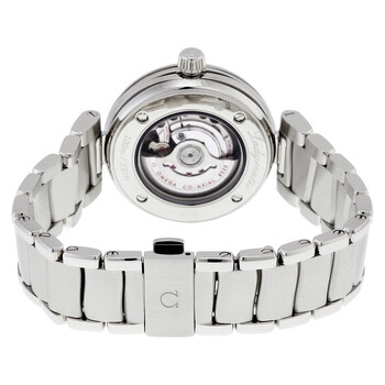 Stainless steel case with a stainless steel bracelet. Fixed stainless steel bezel. Black mother of pearl dial with luminous silver-tone hands and diamond hour markers. Dial Type: Analog. Date display at the 3 o'clock position. Automatic movement with a 50-hour power reserve. Scratch resistant sapphire crystal. Screw down crown. Skeleton case back. Case diameter: 34 mm. Round case shape. Band width: 20.3 mm. Band length: 8 inches. Deployment clasp with push button release. Water resistant at 100 meters / 330 feet. Functions: date, hour, minute, second. Luxury watch style. Watch label: Swiss Made. Omega De Ville Ladymatic Automatic Black Mother of Pearl Diamond Dial Stainless Steel Ladies Watch 42530342057004.