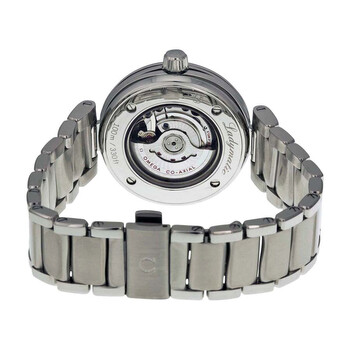 Stainless steel case with a stainless steel bracelet. Fixed stainless steel bezel. Blue mother of pearl dial with luminous silver-toned hands and diamond hour markers. Dial Type: Analog. Luminescent hands. Date display at the 3 o'clock position. Automatic movement with a 50 hour power reserve. Scratch resistant sapphire crystal. Screw down crown. Skeleton case back. Case diameter: 34 mm. Case thickness: 12.3 mm. Round case shape. Deployment clasp. Water resistant at 100 meters / 330 feet. Functions: date, hour, minute, second. Luxury watch style. Watch label: Swiss Made. Omega De Ville Blue Mother of Pearl Diamond Dial Automatic Ladies Watch 42530342057002.