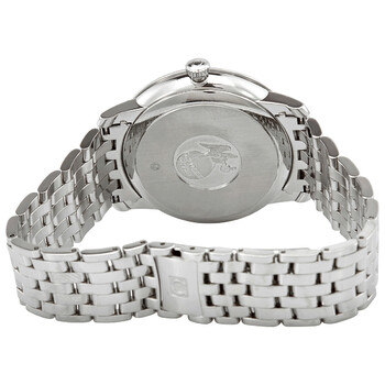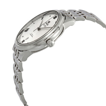 316L stainless steel case and bracelet. Fixed stainless steel bezel. Silver dial with silver-tone hands and alternating Roman numeral and dot cabochon hour markers. Minute markers around the outer rim. Dial Type: Analog. Date display above the 6 o'clock position. Omega calibre 2500 automatic movement, based upon ETA 2892-A2, containing 27 Jewels, bitting at 25200 vph, and has a power reserve of approximately 48 hours. Scratch resistant sapphire crystal. Pull / push crown. Solid case back. Round case shape. Case size: 39.5 mm. Band width: 20 mm. Fold over clasp with a safety release. Water resistant at 30 meters / 100 feet. Functions: date, hour, minute, second, co-axial escapement, chronometer. De Ville Prestige Series. Luxury watch style. Watch label: Swiss Made. Omega De Ville Prestige Automatic Chronometer Silver Dial Men's Watch 42410402002007.