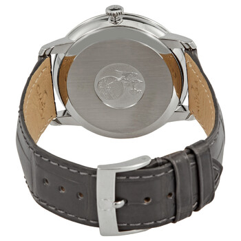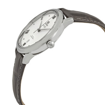 Stainless steel case with a grey leather strap. Fixed stainless steel bezel. Silver dial with grey hands and alternating Roman numeral and cabochon hour markers. Minute markers around the outer rim. Dial Type: Analog. Date display above the 6 o'clock position. Omega calibre 2500 automatic movement, based upon ETA 2892-A2, containing 27 Jewels, bitting at 25200 vph, and has a power reserve of approximately 48 hours. Scratch resistant sapphire crystal. Pull / push crown. Solid case back. Round case shape. Case size: 39.5 mm. Band width: 20 mm. Tang clasp. Water resistant at 30 meters / 100 feet. Functions: date, hour, minute, second, co-axial escapement, chronometer. De Ville Prestige Series. Luxury watch style. Watch label: Swiss Made. Omega De Ville Prestige Automatic Chronometer Silver Dial Men's Watch 424.13.40.20.02.007.