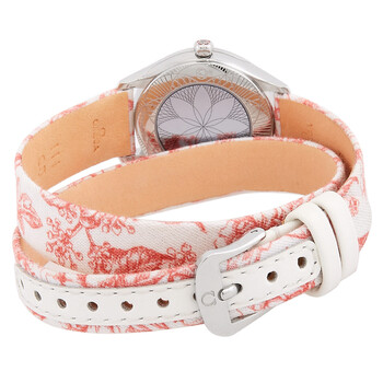 Silver-tone stainless steel case with a white leather strap. Fixed silver-tone bezel with diamond set stainless steel. White dial with silver-tone hands and Roman numeral hour markers. Dial Type: Analog. Omega Calibre 4061 quartz movement. Scratch resistant sapphire crystal. Solid case back. Round case shape, case size: 26 mm. Buckle clasp. Water resistant at 30 meters / 100 feet. Functions: hour, minute. De Ville Series. Luxury watch style. Watch label: Swiss Made. Omega De Ville Quartz Diamond White Dial Ladies Watch 428.17.26.60.04.003.