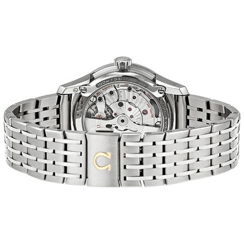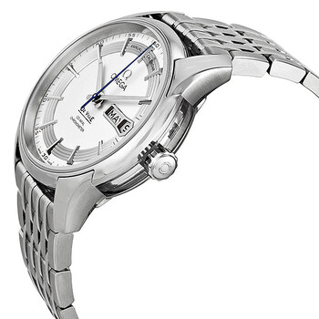 Stainless steel case with a stainless steel bracelet. Fixed stainless steel bezel. Silver dial with silver-tone hands and index hour markers. Minute markers around the outer rim. Dial Type: Analog. Day of the week and date display at the 3 o'clock position. Omega calibre 8601 automatic movement with a 55-hour power reserve. Scratch resistant sapphire crystal. Pull / push crown. Solid case back. Round case shape. Case size: 41 mm. Case thickness: 13 mm. Band width: 20 mm. Deployment clasp. Water resistant at 100 meters / 330 feet. Functions: annual calendar, month, date, hour, minute, second, chronometer. Luxury watch style. Watch label: Swiss Made. Item Variations: 431 30 41 22 02 001, 431-30-41-22-02-001, 431/30/41/22/02/001, 43130412202001. Omega DeVille Hour Vision Silver Dial Stainless Steel Automatic Men's Watch 431.30.41.22.02.001.