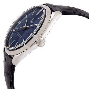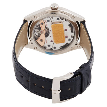 18kt white gold case with a blue alligator leather strap. Fixed 18kt white gold bezel. Blue dial with silver-tone hands and index hour markers. Minute markers around the outer rim. Dial Type: Analog. Date display at the 6 o'clock position. Omega Calibre 8511 Hand Wind movement, containing 39 Jewels, bitting at 25200 vph, and has a power reserve of approximately 60 hours. Scratch resistant sapphire crystal. Pull / push crown. Transparent see through case back. Round case shape, case size: 40 mm, case thickness: 10.8 mm. Band width: 20 mm. Buckle clasp. Water resistant at 30 meters / 100 feet. Functions: date, hour, minute, second, co-axial escapement, chronometer. Additional Info: limited edition (88). De Ville Tresor Series. Luxury watch style. Watch label: Swiss Made. Omega Limited Edition De Ville Tresor Hand Wind Blue Dial Men's Watch 432.53.40.21.03.001.