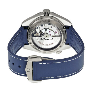 Titanium case with a blue rubber strap. Uni-directional rotating grey titanium with blue ceramic top ring bezel. Blue dial with luminous silver-tone hands and index hour markers. Arabic numerals mark the 6, 9 and 12 o'clock positions. minute markers around the outer rim. Dial Type: Analog. Luminescent hands and markers. Date display at the 3 o'clock position. Omega Calibre 8500 automatic movement with a 60-hour power reserve. Scratch resistant sapphire crystal. Screw down crown. Skeleton case back. Round case shape. Case size: 42 mm. Band width: 20 mm. Deployment clasp. Water resistant at 600 meters / 2000 feet. Functions: date, hour, minute, second, chronometer. Luxury watch style. Watch label: Swiss Made. Item Variations: 232 92 42 21 03 001, 232-92-42-21-03-001, 232/92/42/21/03/001, 23292422103001. Omega Planet Ocean Titanium Co-Axial Blue Dial Men's Watch 232.92.42.21.03.001.
