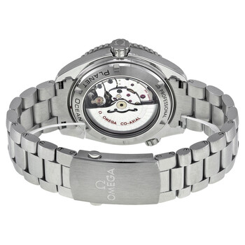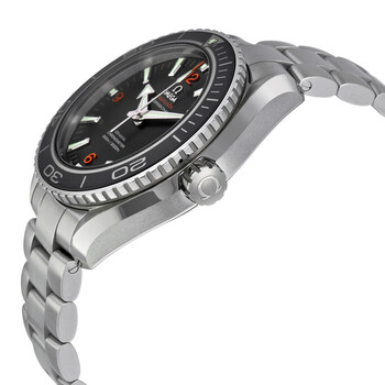 Stainless steel case with a stainless steel bracelet. Uni-directional rotating silver-tone bezel with a black top ringl. Black dial with luminous silver-tone hands and index hour markers. Arabic numerals mark the 6, 9 and 12 o'clock positions. Minute markers around the outer rim. Dial Type: Analog. Luminescent hands and markers. Date display at the 3 o'clock position. Omega calibre 8500 automatic movement with a 60-hour power reserve. Scratch resistant sapphire crystal. Screw down crown. Skeleton case back. Case size: 45.5 mm. Case thickness: 17 mm. Round case shape. Band width: 22 mm. Deployment clasp with a push button release. Water resistant at 600 meters / 2000 feet. Functions: date, hour, minute, second, chronometer. Sport watch style. Watch label: Swiss Made. Omega Plant Ocean Big Size Automatic Men's Watch 23230462101003.