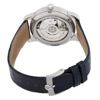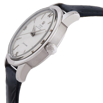 Silver-tone stainless steel case with a blue leather strap. Fixed silver-tone stainless steel bezel. Silver-tone dial with silver-tone hands and index hour markers. Minute markers around the inner ring. Dial Type: Analog. Luminescent hands and markers. Omega Calibre 8806 Automatic movement, containing 35 Jewels, bitting at 25200 vph, and has a power reserve of approximately 55 hours. Scratch resistant sapphire crystal. Transparent see through case back. Round case shape, case size: 38 mm, case thickness: 11.5 mm. Band width: 19 mm. Buckle clasp. Water resistant at 60 meters / 200 feet. Functions: hour, minute, second, co-axial escapement, chronometer, magnetic resistant. Additional Info: limited edition of 1948 pieces. Seamaster Series. Luxury watch style. Watch label: Swiss Made. Omega Seamaster 1948 Automatic Silver Dial Men's Watch 511.13.38.20.02.001.