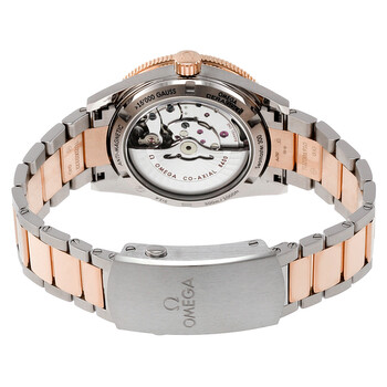 Grey titanium case with a two-tone (silver-tone and rose gold-tone) titanium with 18kt rose gold bracelet. Uni-directional rotating coin edge 18kt rose gold bezel with a blue ceragold count-up elapsed time top ring. Sand-blasted blue dial with luminous rose gold-tone arrow-shaped hands and index hour markers. Arabic numerals mark the 3, 6., 9 and 12 o'clock positions. minute markers around the outer rim. Dial Type: Analog. Luminescent hands and markers. Omega Calibre 8400 Automatic movement, based upon Omega 8500, containing 39 Jewels, bitting at 25200 vph, and has a power reserve of approximately 60 hours. Scratch resistant sapphire crystal. Screw down crown. Transparent case back. Round case shape, case size: 41 mm. Band width: 21 mm. Deployment clasp. Water resistant at 300 meters / 1000 feet. Functions: hour, minute, second, co-axial escapement, chronometer. Seamaster 300 Series. Luxury watch style. Watch label: Swiss Made. Item Variations: 233 60 41 21 03 001, 233-60-41-21-03-001, 233/60/41/21/03/001, 23360412103001. Omega Seamaster 300 Automatic Blue Dial Men's Watch 23360412103001.