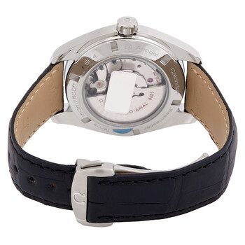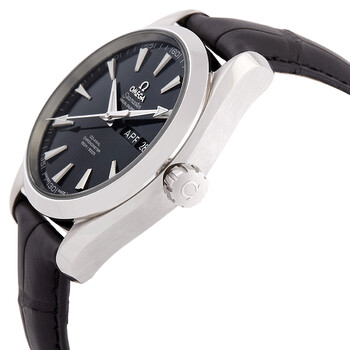 Silver-tone stainless steel case with a black leather strap. Fixed silver-tone stainless steel bezel. Black dial with silver-tone hands and index hour markers. Minute markers around the outer rim. Dial Type: Analog. Luminescent hands and markers. Month and date display at the 3 o'clock position. Omega Calibre 8601 Automatic movement, based upon Omega 8500, containing 39 Jewels, bitting at 25200 vph, and has a power reserve of approximately 55 hours. Scratch resistant sapphire crystal. Screw down crown. Transparent case back. Round case shape, case size: 43 mm. Band width: 21 mm. Water resistant at 150 meters / 500 feet. Functions: annual calendar, month, date, hour, minute, second, co-axial escapement, chronometer. Seamaster Aqua Terra Series. Luxury watch style. Watch label: Swiss Made. Item Variations: 231 13 43 22 01 002, 231-13-43-22-01-002, 231/13/43/22/01/002, 23113432201002. Omega Seamaster Aqua Terra Automatic Chronometer Black Dial Men's Watch 231.13.43.22.01.002.