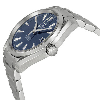 Stainless steel case with a stainless steel bracelet. Fixed stainless steel bezel. Blue dial with luminous silver-tone hands and index hour markers. Minute markers around the outer rim. Dial Type: Analog. Luminescent hands and markers. Date display at the 3 o'clock position. Omega calibre 8501 automatic movement with a 60-hour power reserve. Scratch resistant sapphire crystal. Pull / push crown. Skeleton case back. Round case shape, case size: 41.5 mm, case thickness: 13 mm. Band width: 20 mm. Double fold clasp with a push button release. Water resistant at 150 meters / 500 feet. Functions: date, hour, minute, second, co-axial escapement, chronometer. Luxury watch style. Watch label: Swiss Made. Omega Seamaster Aqua Terra Automatic Chronometer Men's Watch 23110422103001.