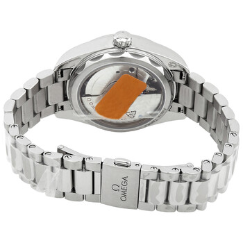 Silver-tone stainless steel case and bracelet. Fixed silver-tone stainless steel bezel. Sandstone dial with silver-tone hands and index hour markers. Dial Type: Analog. Luminescent hands and markers. Date display at the 6 o'clock position. Omega Calibre 8800 Automatic movement, containing 35 Jewels, bitting at 25200 vph, and has a power reserve of approximately 55 hours. Scratch resistant sapphire crystal. Transparent case back. Round case shape, case size: 34 mm. Band width: 16 mm. Water resistant at 150 meters / 500 feet. Functions: date, hour, minute, second, co-axial escapement, chronometer, magnetic resistant. Seamaster Aqua Terra Series. Luxury watch style. Watch label: Swiss Made. Omega Seamaster Aqua Terra Automatic Chronometer Sandstone Dial Ladies Watch 220.10.34.20.09.001.