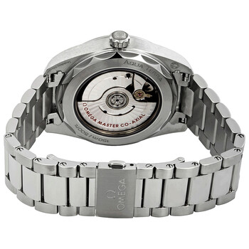 Stainless steel case and bracelet. Fixed smooth stainless steel bezel. Silver dial with luminous rhodium plated arrow-shaped hands and white gold index hour markers. Dial Type: Analog. Luminescent hands and markers. Date display at the 6 o'clock position. Omega Calibre 8800 Automatic movement, containing 35 Jewels, bitting at 25200 vph, and has a power reserve of approximately 55 hours. Scratch resistant sapphire crystal. Pull / push crown. Transparent case back. Round case shape, case size: 38 mm. Band width: 19 mm. Fold over clasp with a push button release. Water resistant at 150 meters / 500 feet. Functions: date, hour, minute, second, co-axial escapement, chronometer. Seamaster Aqua Terra Series. Luxury watch style. Watch label: Swiss Made. Omega Seamaster Aqua Terra Co-Axial Master Chronometer Automatic Silver Dial Men's Watch 220.10.38.20.02.003.