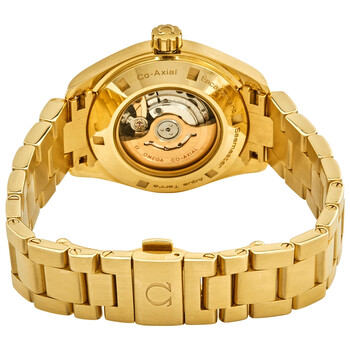 18kt yellow gold case with a 18kt yellow gold bracelet. Fixed 18kt yellow gold bezel set with diamonds. White mother of pearl dial with luminous gold-tone arrow-shaped hands and diamond hour markers. Minute markers around the outer rim. Dial Type: Analog. Luminescent hands. Date display at the 3 o'clock position. Omega calibre 8521 automatic movement, based upon Omega 8520, containing 28 Jewels, bitting at 25200 vph, and has a power reserve of approximately 50 hours. Scratch resistant sapphire crystal. Screw down crown. Transparent case back. Round case shape. Case size: 34 mm. Case thickness: 10 mm. Band width: 16 mm. Fold over clasp with a push button release. Water resistant at 150 meters / 500 feet. Functions: date, hour, minute, second, co-axial escapement, chronometer. Seamaster Aqua Terra Series. Luxury watch style. Watch label: Swiss Made. Omega Seamaster Aqua Terra Automatic Ladies 18kt Yellow Gold Watch 231.55.34.20.55.001.
