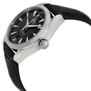 Stainless steel case with a black (alligator) leather strap. Fixed stainless steel bezel. Black dial with luminous silver-tone hands and index hour markers. Minute markers around the outer rim. Dial Type: Analog. Luminescent hands and markers. Date display at the 6 o'clock position. Day of the week display at the 12 o'clock position. Omega calibre 8602 automatic movement with a 55-hour power reserve. Scratch resistant sapphire crystal. Screw down crown. Transparent case back. Case size: 41.5 mm. Round case shape. Band width: 20 mm. Band length: 8 inches. Fold over clasp with a push button release. Water resistant at 150 meters / 500 feet. Functions: date, hour, minute, second. Luxury watch style. Watch label: Swiss Made. Item Variations: 231 13 42 22 01 001, 231-13-42-22-01-001, 231/13/42/22/01/001, 23113422201001. Omega Seamaster Aqua Terra Automatic Men's Watch 23113422201001.