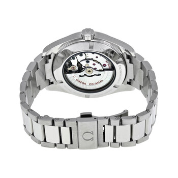 Stainless steel case with a stainless steel bracelet. Fixed stainless steel bezel. Lacquered blue dial with silver-tone hands and index hour markers. 24 hour markers. Arabic numeral minute markers (at 5 minute intervals). Minute markers around the outer rim. Luminescent hands and markers. Date display at the 6 o'clock position. Automatic movement with a 60-hour power reserve. Scratch resistant sapphire crystal. Screw down crown. Transparent case back. Case diameter: 43 mm. Case thickness: 14.7 mm. Round case shape. Bracelet width: 20 mm. Fold over push button clasp. Water resistant at 150 meters / 500 feet. Functions: date, hour, minute, second, GMT. Luxury watch style. Watch label: Swiss Made. Omega Aqua Terra GMT Automatic Blue Dial Stainless Steel Men's Watch 23110432203001.