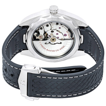 Stainless steel case with a grey rubber strap. Fixed stainless steel bezel. Blue dial with luminous silver-tone hands and index hour markers. Arabic numeral minute markers (at 5 minute intervals). Minute markers around the outer rim. Dial Type: Analog. Luminescent hands and markers. Date display at the 6 o'clock position. Omega caliber 8900 automatic movement with a 60-hour power reserve. Scratch resistant sapphire crystal. Screw down crown. Transparent case back. Round case shape. Case size: 41 mm. Case thickness: 13.2 mm. Band width: 20 mm. Fold over clasp. Water resistant at 150 meters / 500 feet. Functions: hour, minute, second, co-axial escapement, chronometer. Luxury watch style. Watch label: Swiss Made. Omega Seamaster Automatic Blue Dial Men's Watch 220.12.41.21.03.002.