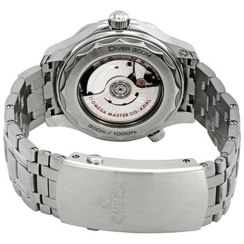 Stainless steel case with a stainless steel bracelet. Uni-directional rotating stainless steel bezel with a blue ceramic (count-up elapsed time) top ring bezel. Blue dial with rhodium-plated skeleton hands and dot hour markers. Minute markers around the outer rim. Dial Type: Analog. Luminescent hands and markers. Date display at the 6 o'clock position. Omega calibre 8800 automatic movement, containing 35 Jewels, bitting at 25200 vph, and has a power reserve of approximately 55 hours. Scratch resistant sapphire crystal. Screw down crown. Transparent case back. Round case shape. Case size: 42 mm. Case thickness: 14 mm. Band width: 20 mm. Deployment clasp with a push button release. Water resistant at 300 meters / 1000 feet. Functions: date, hour, minute, second. Seamaster Series. Dive watch style. Watch label: Swiss Made. Omega Seamaster Automatic Blue Dial Steel Men's Watch 210.30.42.20.03.001.