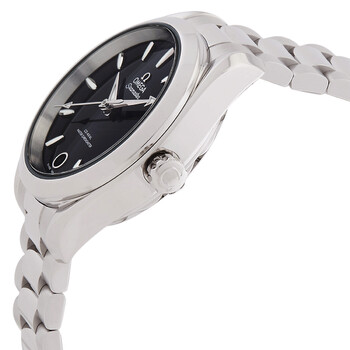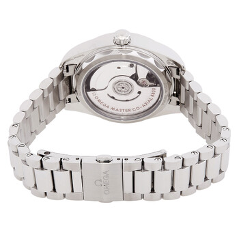 Silver-tone stainless steel case and bracelet. Fixed silver-tone stainless steel bezel. Black dial with silver-tone hands and index hour markers. Dial Type: Analog. Luminescent hands and markers. Date display at the 6 o'clock position. Omega Calibre 8800 Automatic movement, containing 35 Jewels, bitting at 25200 vph, and has a power reserve of approximately 55 hours. Scratch resistant sapphire crystal. Transparent see through case back. Round case shape, case size: 34 mm. Fold over clasp with a safety release. Water resistant at 150 meters / 500 feet. Functions: date, hour, minute, second, co-axial escapement, chronometer, magnetic resistant. Seamaster Series. Luxury watch style. Watch label: Swiss Made. Omega Seamaster Automatic Chronometer Black Dial Ladies Watch 220.10.34.20.01.001.