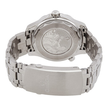Silver-tone stainless steel case and bracelet. Uni-directional rotating blue ceramic bezel. Blue dial with silver-tone hands and index hour markers. Minute markers around the outer rim. Dial Type: Analog. Luminescent hands and markers. Date display at the 6 o'clock position. Omega Calibre 8800 Automatic movement, containing 35 Jewels, bitting at 25200 vph, and has a power reserve of approximately 55 hours. Scratch resistant sapphire crystal. Screw down crown. Solid case back. Round case shape, case size: 42 mm. Fold over clasp with a safety release. Water resistant at 300 meters / 1000 feet. Functions: date, hour, minute, second, co-axial escapement, chronometer, magnetic resistant. Additional Info: original box, manual (complete accessories). Seamaster Series. Dive watch style. Watch label: Swiss Made. Omega Seamaster Automatic Chronometer Blue Dial Men's Watch 210.30.42.20.03.003.