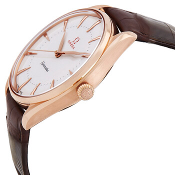 18kt rose gold case with a brown leather strap. Fixed 18kt rose gold bezel. White dial with 18kt rose gold hands and index hour markers. Minute markers. Dial Type: Analog. Omega Calibre 8807 Automatic movement, based upon Omega 8800, containing 35 Jewels, bitting at 25200 vph, and has a power reserve of approximately 55 hours. Scratch resistant sapphire crystal. Transparent case back. Round case shape, case size: 39.5 mm. Band width: 20 mm. Buckle clasp. Water resistant at 60 meters / 200 feet. Functions: hour, minute, second, co-axial escapement, chronometer, magnetic resistant. Seamaster Series. Luxury watch style. Watch label: Swiss Made. Omega Seamaster Automatic Chronometer White Dial Men's Watch 522.53.40.20.04.003.