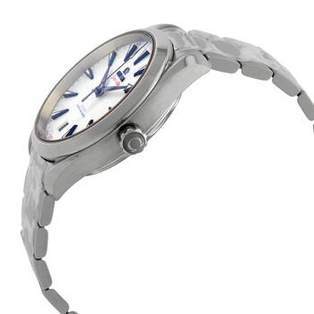 Silver-tone stainless steel case and bracelet. Fixed silver-tone stainless steel bezel. White dial with blue hands and index hour markers. Minute markers around the outer rim. Dial Type: Analog. Luminescent hands and markers. Date display at the 6 o'clock position. Omega Calibre 8900 Automatic movement, based upon Omega 8500, containing 39 Jewels, bitting at 25200 vph, and has a power reserve of approximately 60 hours. Scratch resistant sapphire crystal. Screw down crown. Solid case back. Round case shape, case size: 41 mm. Deployment with push button release clasp. Water resistant at 150 meters / 500 feet. Functions: date, hour, minute, second, co-axial escapement, chronometer. Additional Info: original box, international warranty card, manual (complete accessories). Seamaster Series. Luxury watch style. Watch label: Swiss Made. Omega Seamaster Automatic Chronometer White Dial Men's Watch 522.10.41.21.04.001.