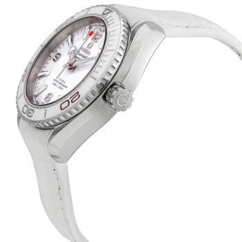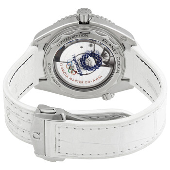 Silver-tone stainless steel case with a white leather strap. Uni-directional rotating stainless steel with an inlaid white ring bezel. White dial with silver-tone hands and index-Arabic numeral hour markers. Minute markers around the outer rim. Arabic numeral marker appears at the 6, 9 and 12 o'clock positions. Dial Type: Analog. Luminescent hands and markers. Date display at the 3 o'clock position. Omega Calibre 8800 Automatic movement, containing 35 Jewels, bitting at 25200 vph, and has a power reserve of approximately 55 hours. Scratch resistant sapphire crystal. Screw down crown. Transparent case back. Round case shape, case size: 39.5 mm. Water resistant at 600 meters / 2000 feet. Functions: date, hour, minute, second, co-axial escapement, chronometer, magnetic resistant. Additional Info: original box, manual (complete accessories). Seamaster Series. Dive watch style. Watch label: Swiss Made. Omega Seamaster Automatic Chronometer White Dial "Tokyo 2020" Limited Edition Unisex Watch 522.33.40.20.04.001.