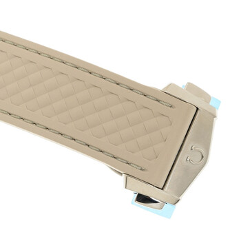 Silver-tone stainless steel case with a beige rubber strap. Fixed silver-tone stainless steel bezel. Grey dial with black hands and index hour markers. Minute markers around the outer rim. Dial Type: Analog. Luminescent hands and markers. Date display at the 6 o'clock position. Omega Calibre 8916 automatic movement. Scratch resistant sapphire crystal. Screw down crown. Transparent see through case back. Round case shape, case size: 41 mm. Buckle clasp. Water resistant at 150 meters / 500 feet. Functions: date, hour, minute, second. Additional Info: original box, international warranty card, manual (complete accessories). Seamaster Series. Luxury watch style. Watch label: Swiss Made. Omega Seamaster Automatic Grey Dial Men's Watch 220.12.41.21.02.005.